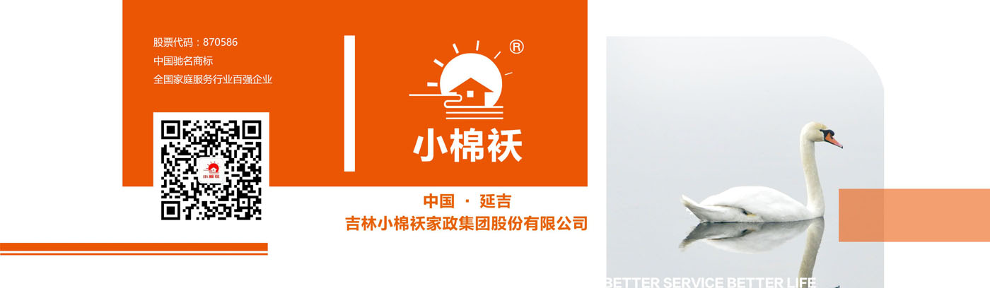 吉林小棉襖家政集團(tuán)股份有限公司成立于2004年6月3日,注冊(cè)資本4020萬(wàn)元,主營(yíng)業(yè)務(wù)有物業(yè)管理、培訓(xùn)學(xué)校、家政服務(wù),勞務(wù)派遣、保安、保潔服務(wù)等。先后安置下崗職工和農(nóng)村剩余勞動(dòng)力就業(yè)二萬(wàn)多人。公司先后榮獲:全國(guó)家庭服務(wù)行業(yè)知名品牌單位、全國(guó)優(yōu)秀民辦職介機(jī)構(gòu)、全國(guó)家庭服務(wù)行業(yè)百家誠(chéng)信企業(yè)、中國(guó)清洗保潔十大標(biāo)兵企業(yè)、吉林省十大服務(wù)業(yè)品牌、吉林省守信用重合同單位、吉林省馳名勞務(wù)品牌、吉林省誠(chéng)信維權(quán)先進(jìn)單位、吉林省清費(fèi)者滿意單位等榮譽(yù)稱(chēng)號(hào)。2011、2012連續(xù)二年被評(píng)為全國(guó)家庭服務(wù)行業(yè)百?gòu)?qiáng)企業(yè)。